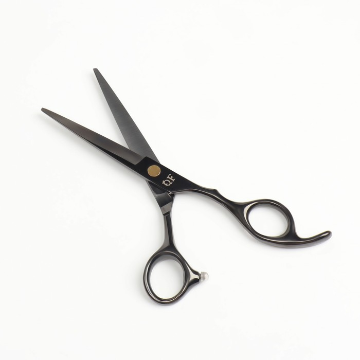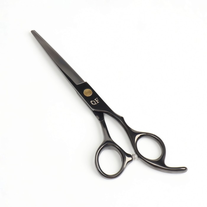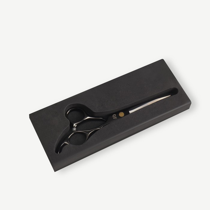 Ножницы парикмахерские с упором «Premium», загнутые кольца, лезвие — 6,5 см, цвет чёрный