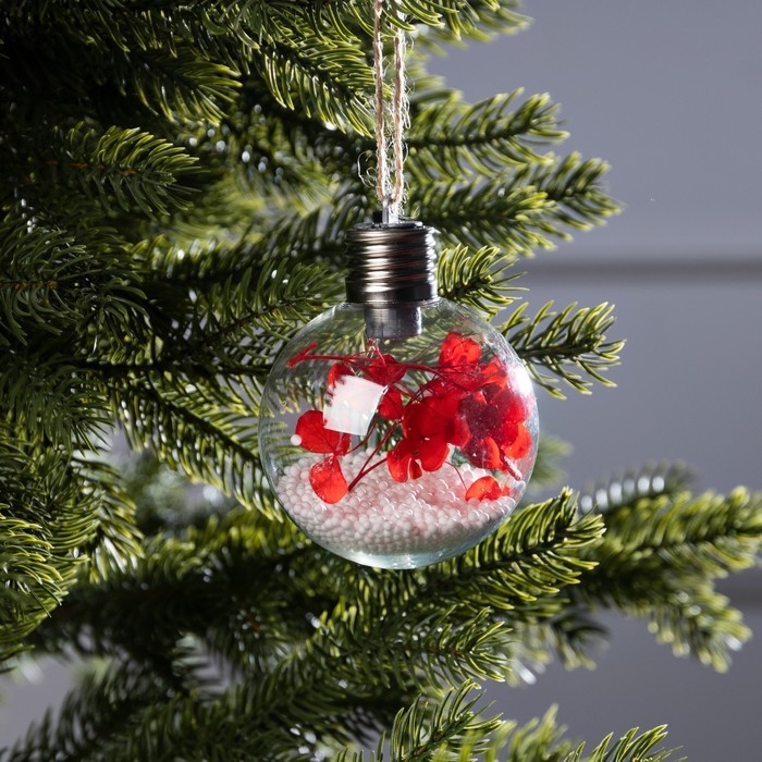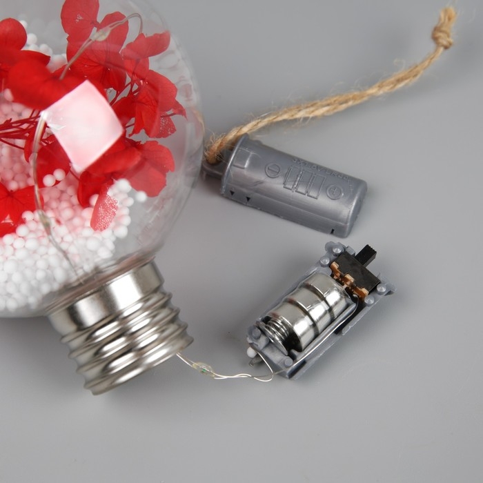 Ёлочный шар «Красные лепестки», батарейки, 5 LED, свечение тёплое белое