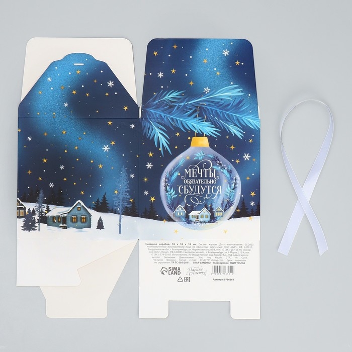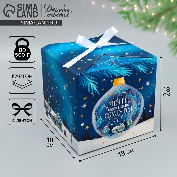 Коробка подарочная новогодняя складная «Мечты обязательно сбудутся», 18 х 18 х 18 см, Новый год