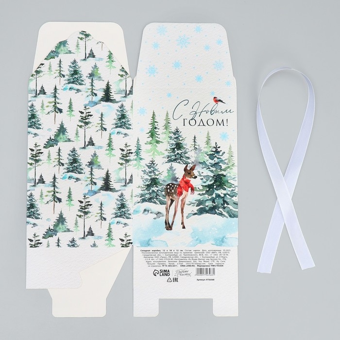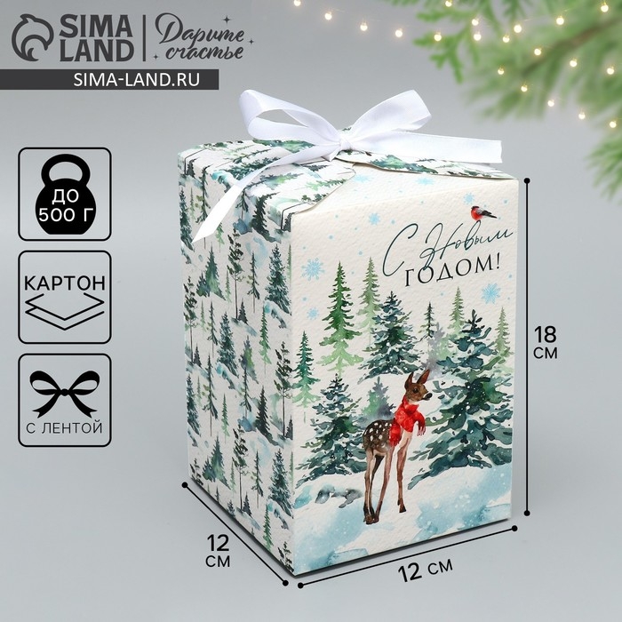 Коробка подарочная новогодняя складная «С Новым годом!», лес, 12 х 18 х 12 см, Новый год