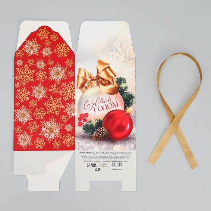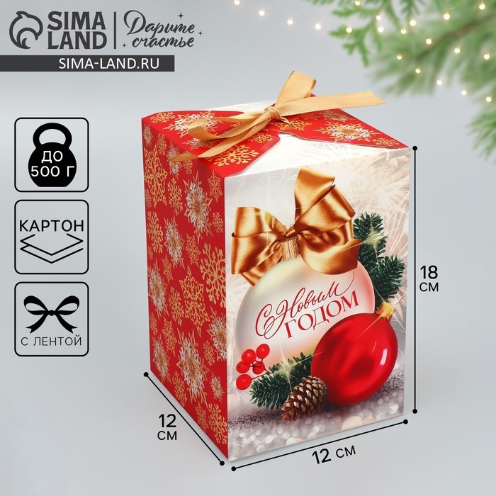 Коробка подарочная новогодняя складная «С Новым годом», шары, 12 х 18 х 12 см, Новый год