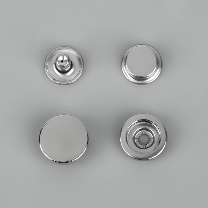 В наборе 10 кнопок, d = 15 мм, цвет серебряный.