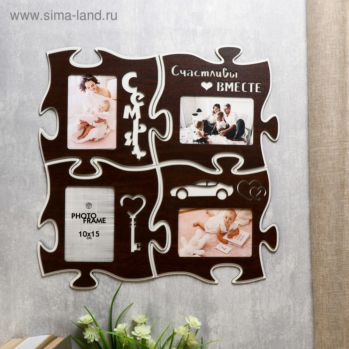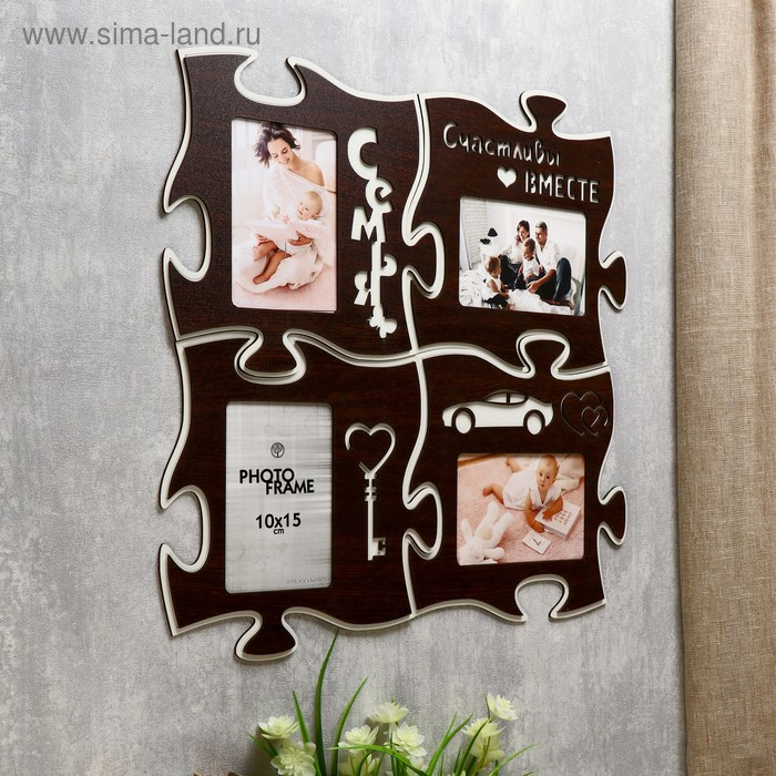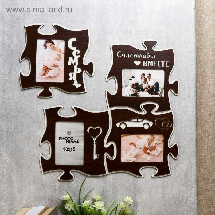 Фоторамка пазл ХДФ "Семья" из 4 фрагментов 25х25 см
