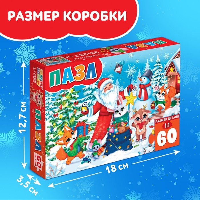 Пазл с новогодним сюжетом — то, что нужно для полезного и интересного досуга! Такой подарок поможет ребёнку скрасить ожидание Нового года, а также потренировать мелкую моторику, внимательность, логическое мышление и память.