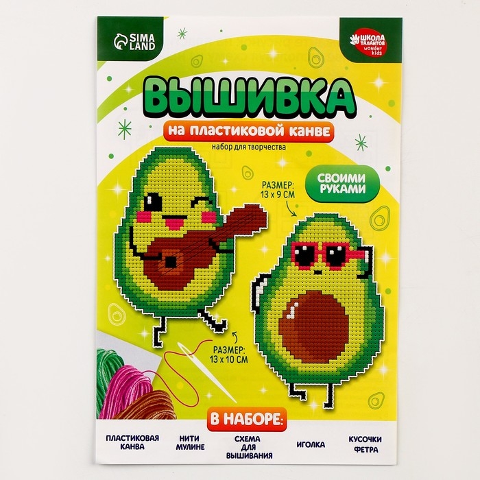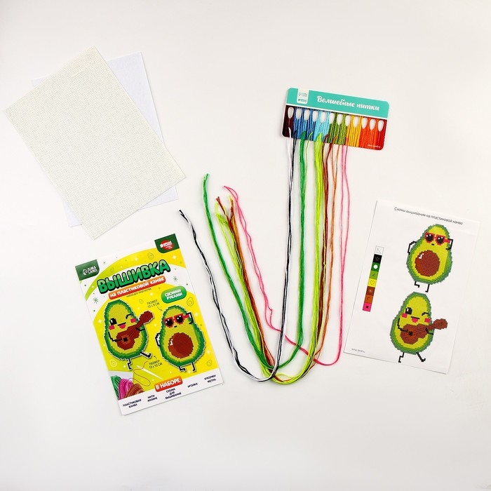 Вышивка крестиком для детей на пластиковой канве «Крутые авокадо», набор для творчества