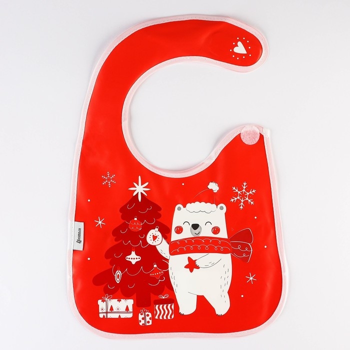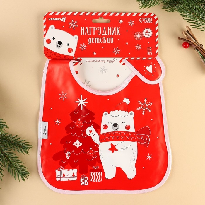 Нагрудник для кормления «Новогодний мишка», непромокаемый на липучке, с карманом, подарочная упаковка, Крошка Я