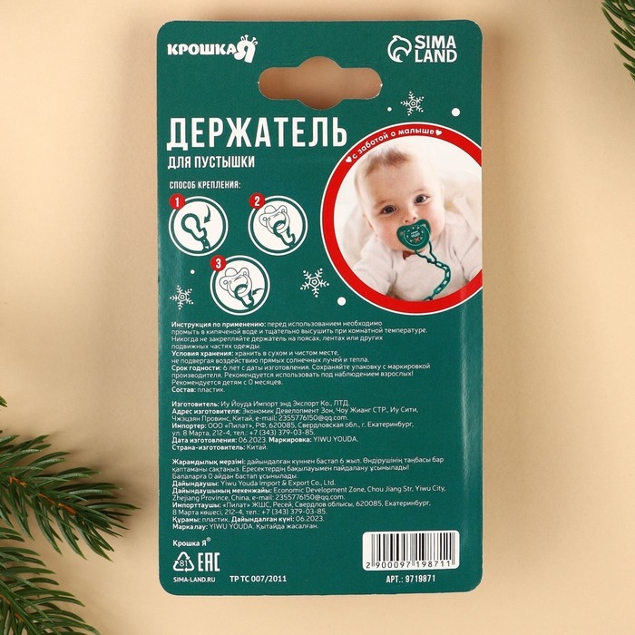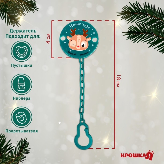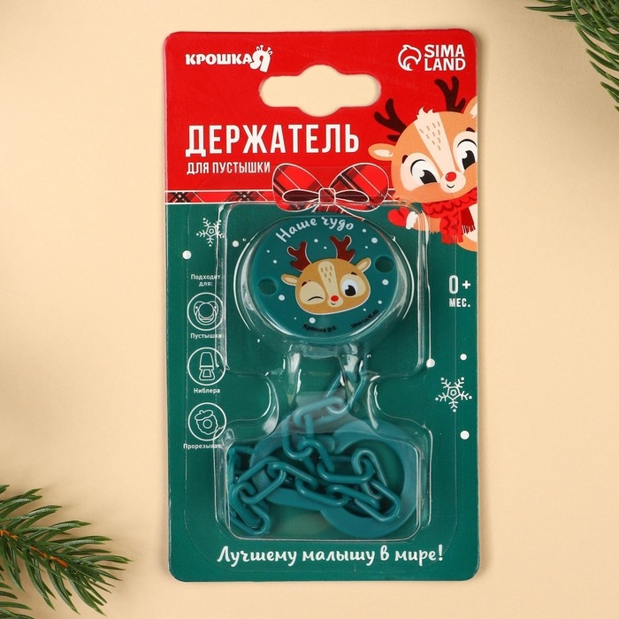 Держатель для соски - пустышки «Наше чудо», новогодний, на цепочке, цвет зеленый, подарочная упаковка, Крошка Я