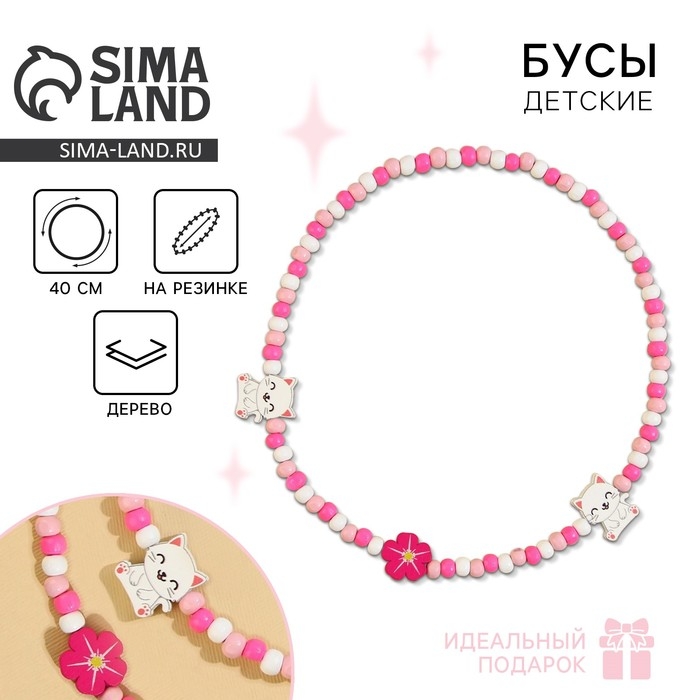 Бусы детские «Выбражулька» бусинки и цветочки, цветные, 38 см с удлинителем