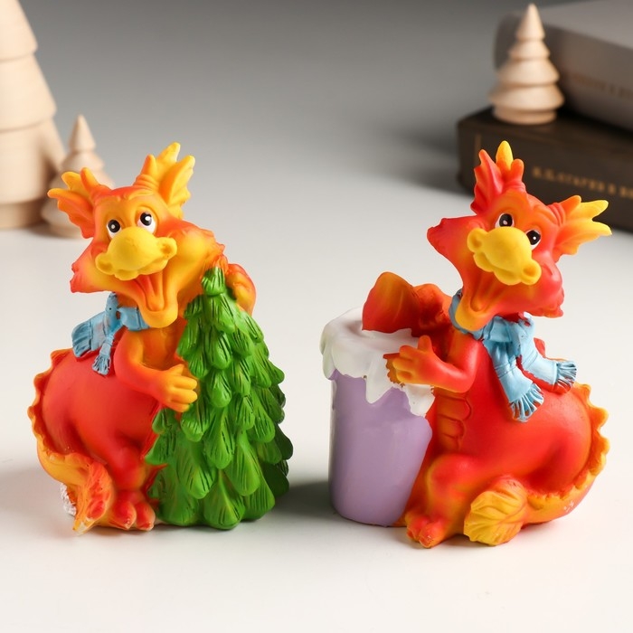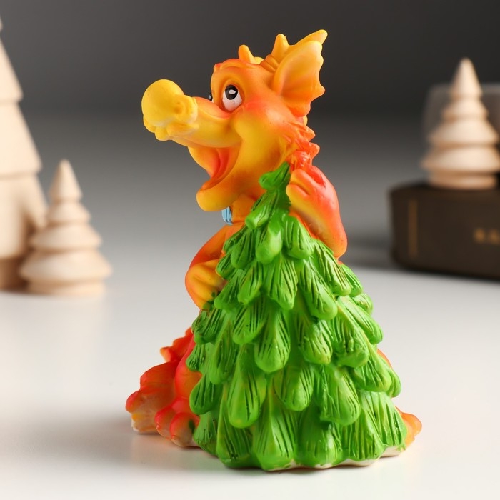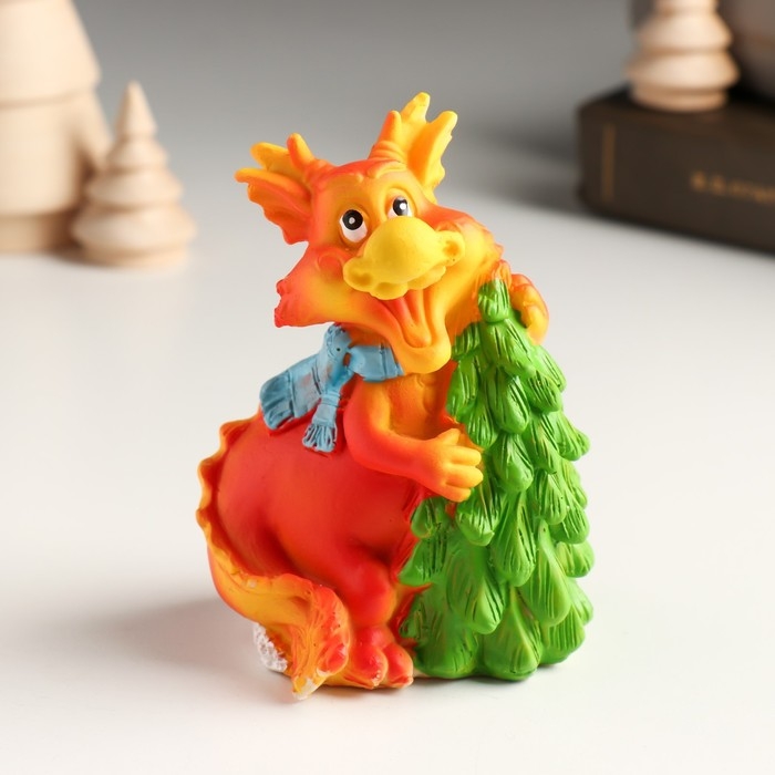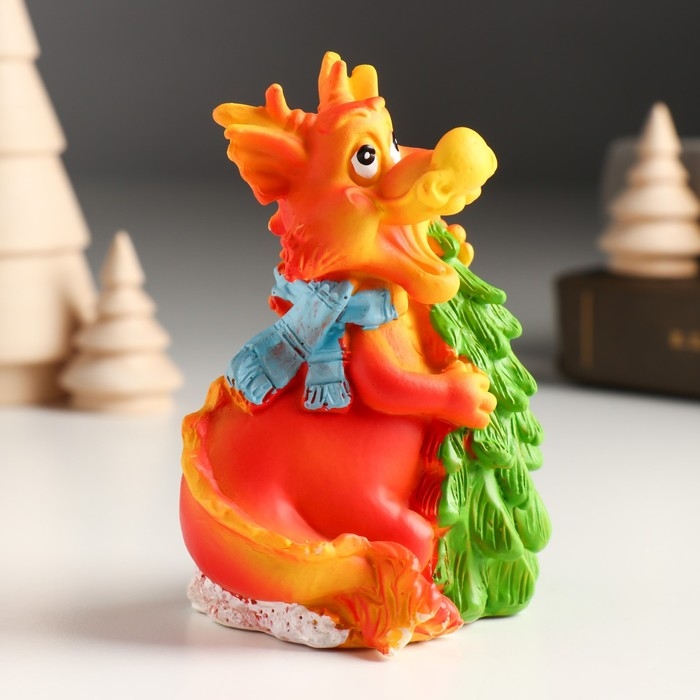 Копилка полистоун "Рыжий дракон в шарфике с ёлочкой/мороженым" МИКС 7,5х6х10 см