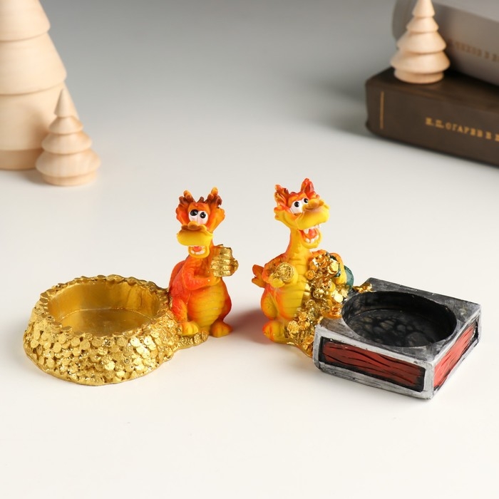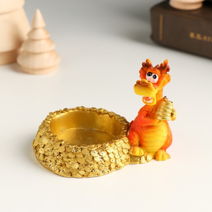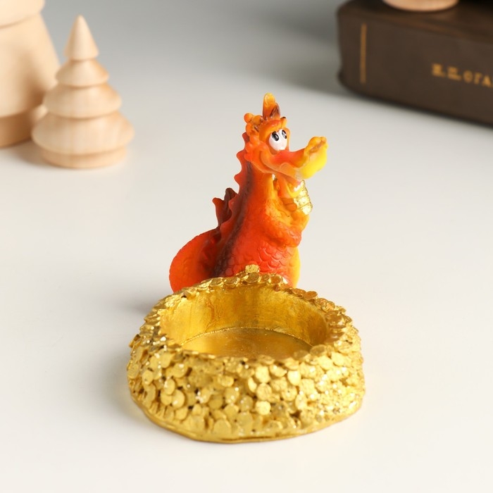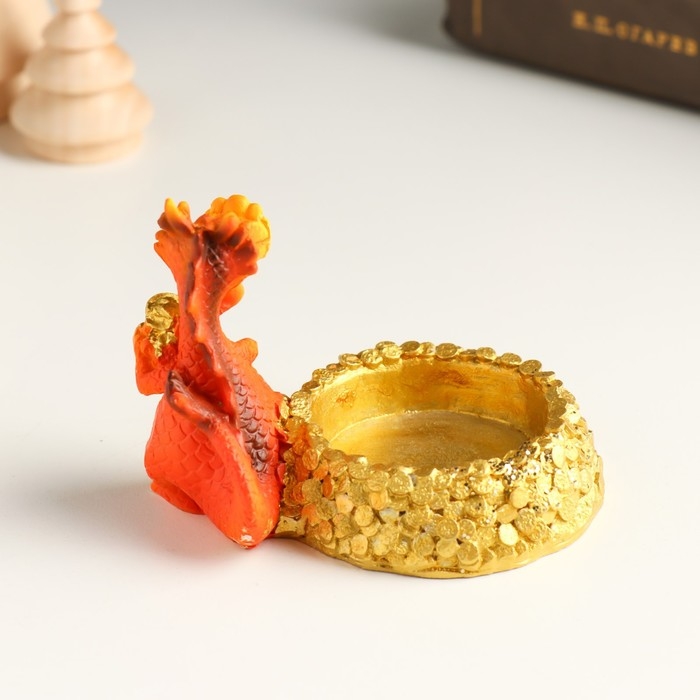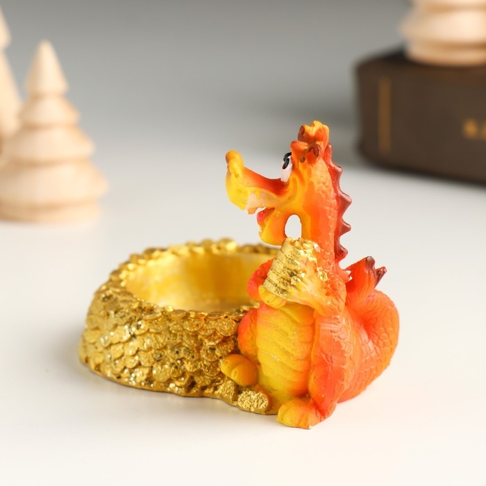 Сувенир полистоун подсвечник "Дракон с золотыми монетами" МИКС 8,8х5,2х6,3 см