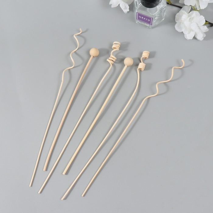 Палочки для аромадиффузора из ротанга "Спиральки и шарики" набор 6 шт
