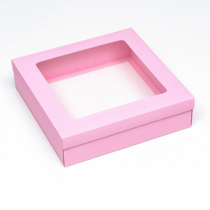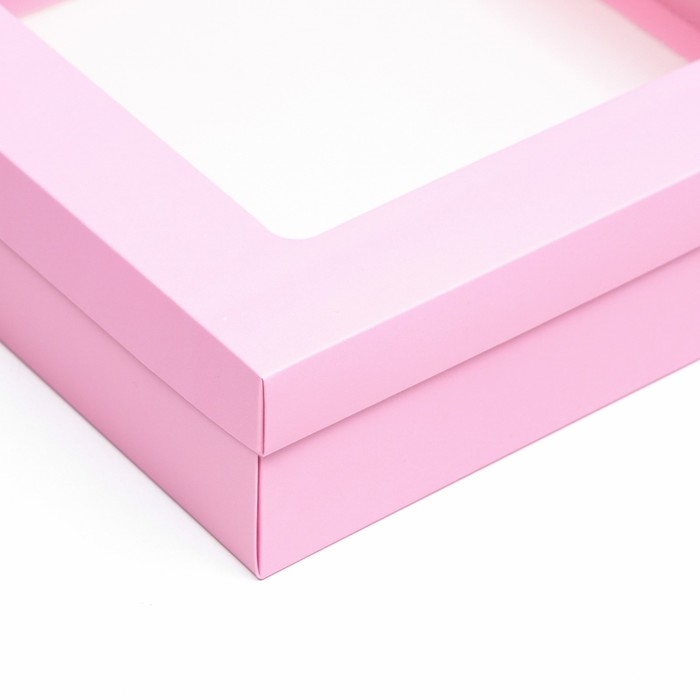 Коробка подарочная складная, упаковка, крышка-дно, розовая, с окном 30 х 30 х 8 см