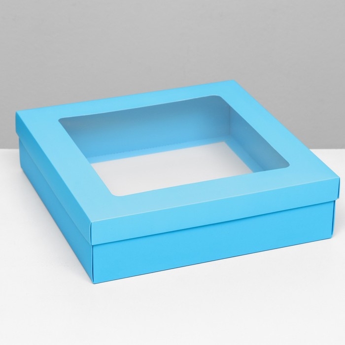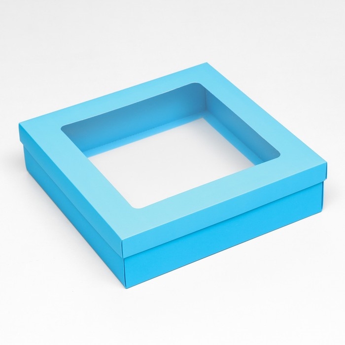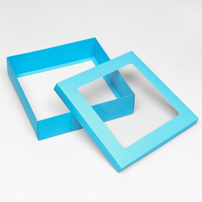 Коробка подарочная складная, упаковка, крышка-дно, бирюзовая, с окном 30 х 30 х 8 см