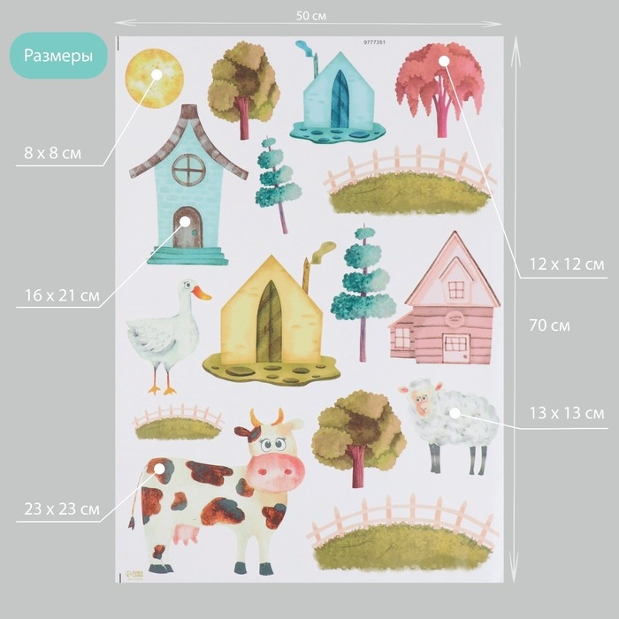Наклейка интерьерная цветная "Домик в деревне" 50х70 см
