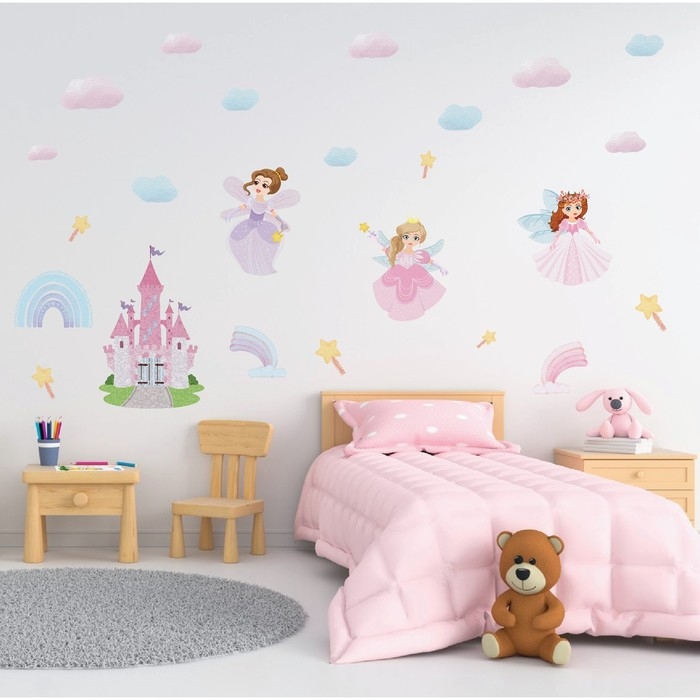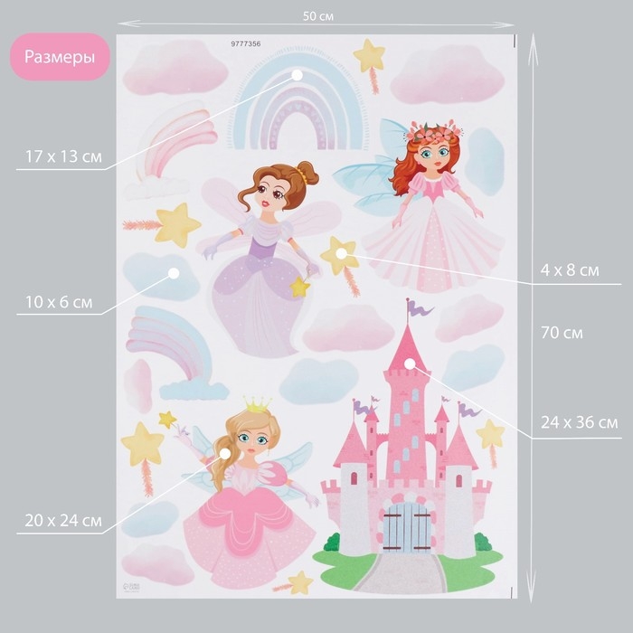 Наклейка интерьерная цветная "Принцессы у замка" 50х70 см