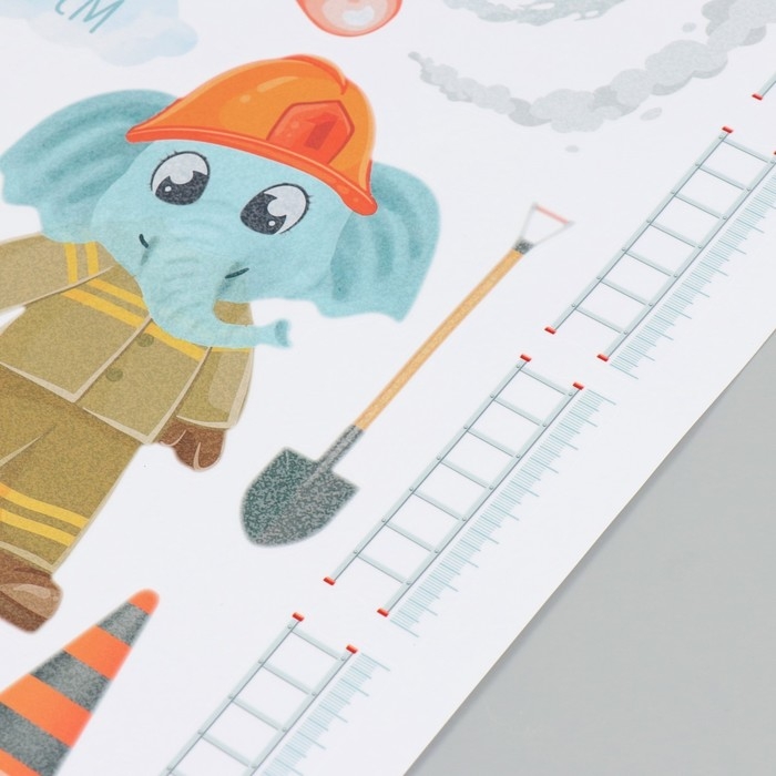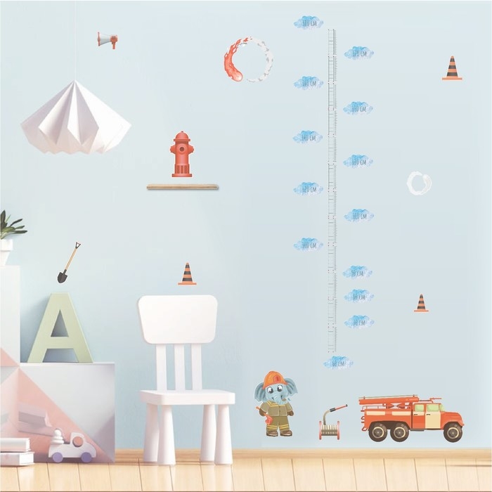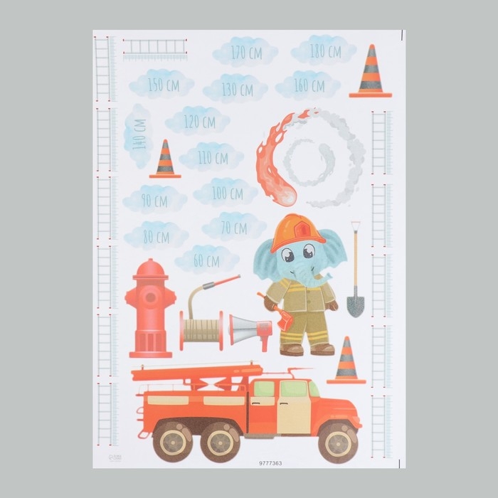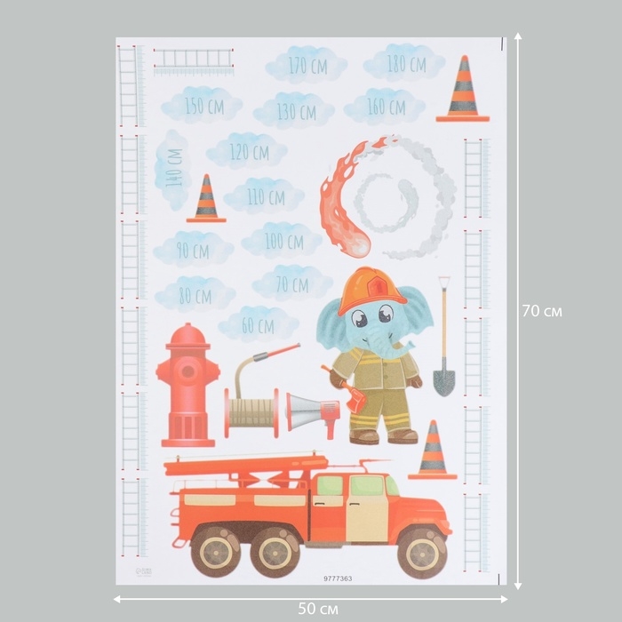 Наклейка интерьерная цветная ростомер "Пожарная машина" 50х70 см