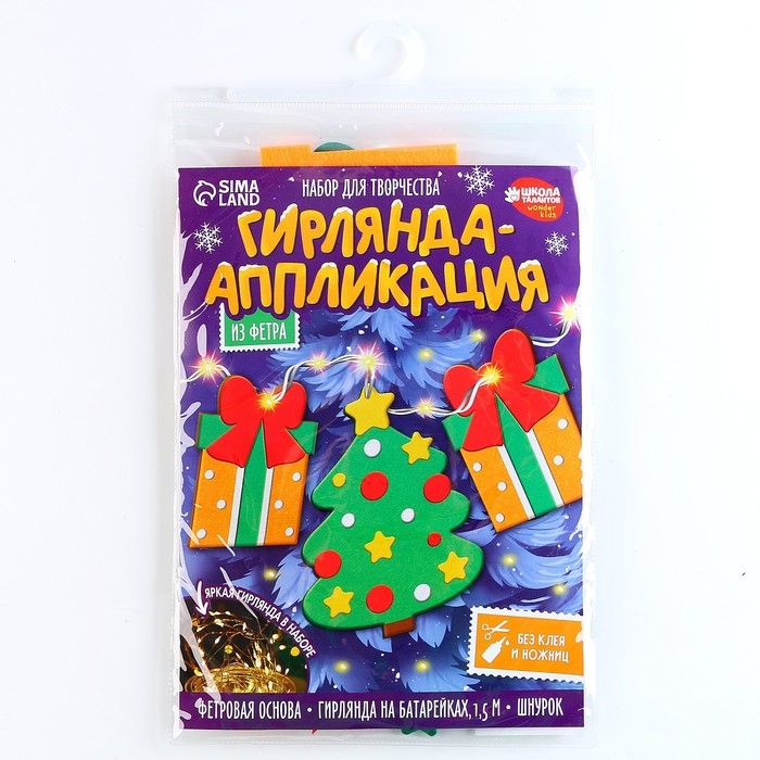 Гирлянда из фетра своими руками на новый год «Ёлочка и подарок», новогодний набор для творчества