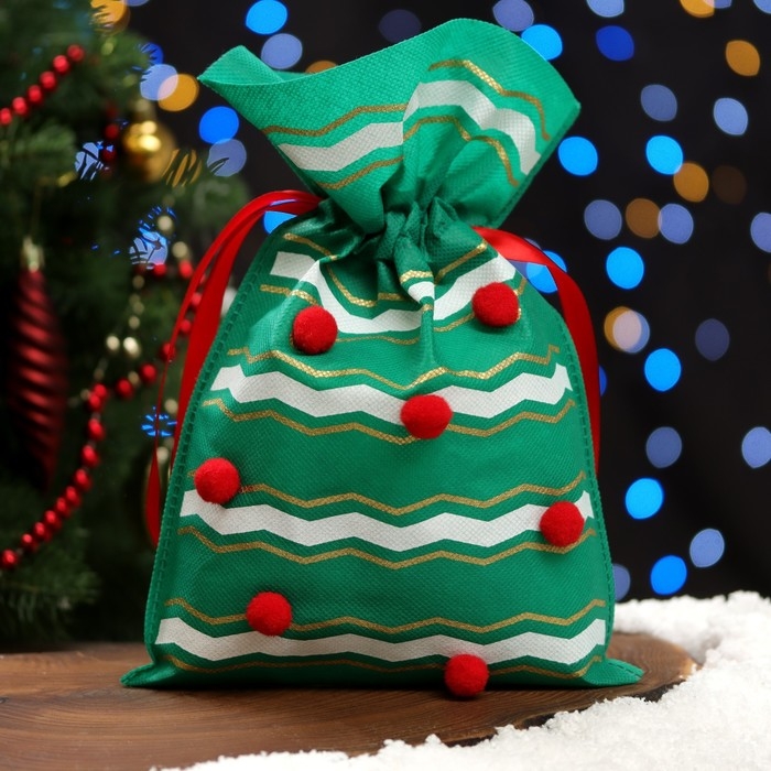 Новый год. Мешок подарочный "Помпоны", 20 х 30 см