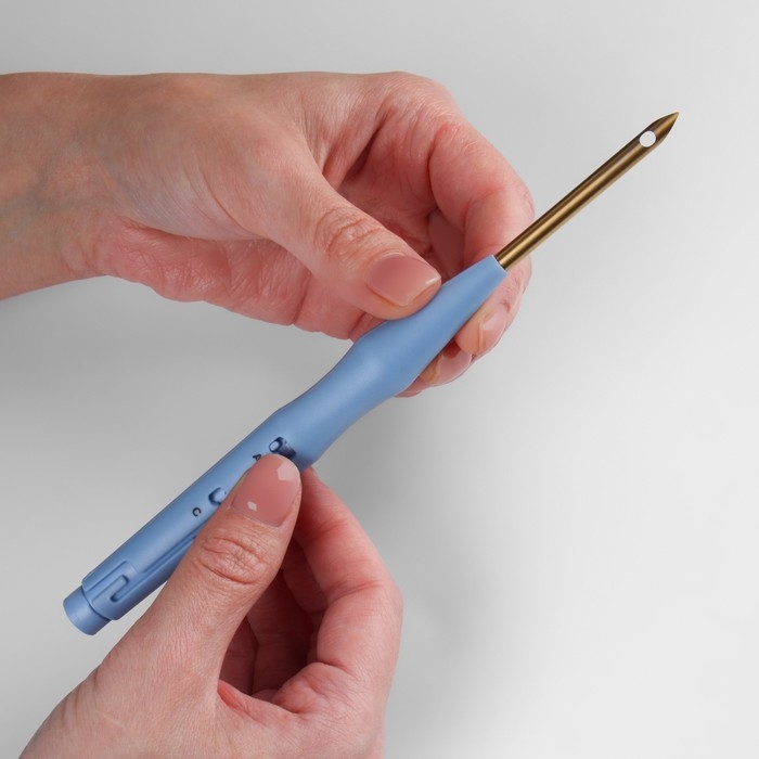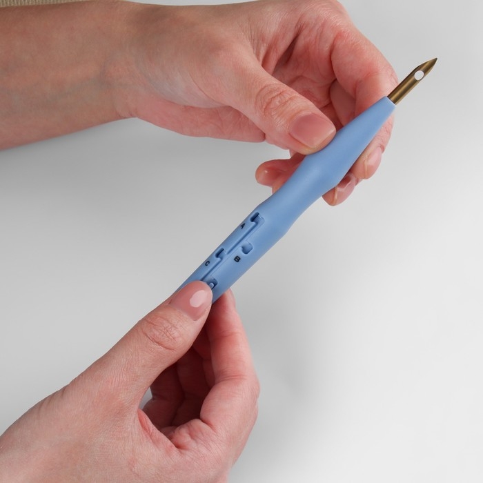 Игла для вышивания, для ковровой техники, d = 4,8 мм, 18,5 см, с нитевдевателем, цвет голубой