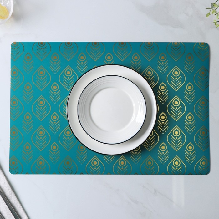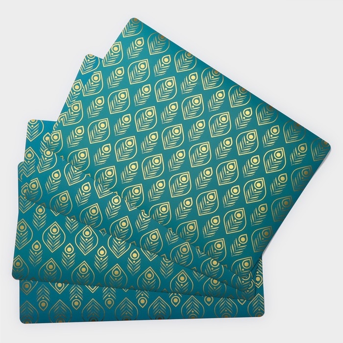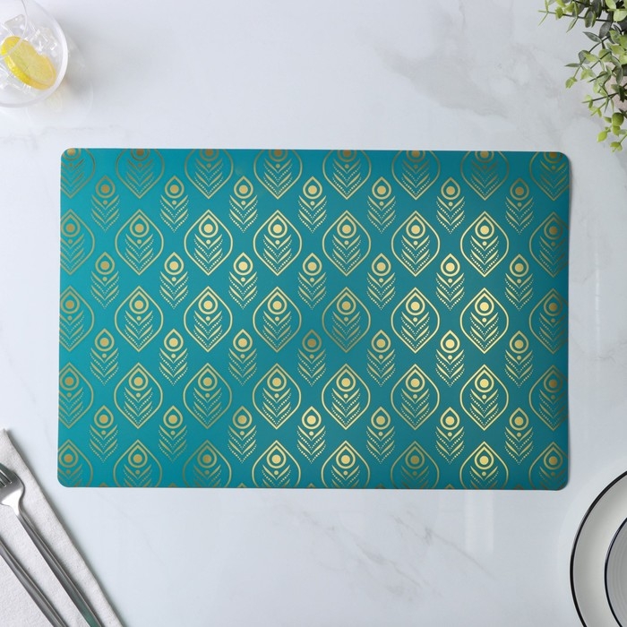 Салфетки сервировочные на стол Доляна «Перья», 4 шт, 30×45 см, цвет бирюзовый