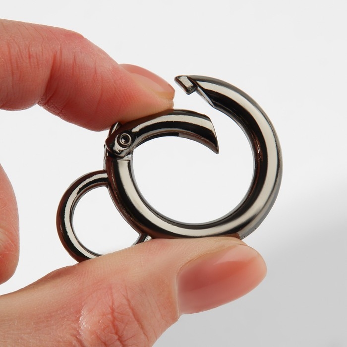 Кольцо-карабин, 37 мм, d = 27/19 мм, толщина - 4 мм, с креплением 12 × 3 мм, 5 шт, цвет чёрный никель