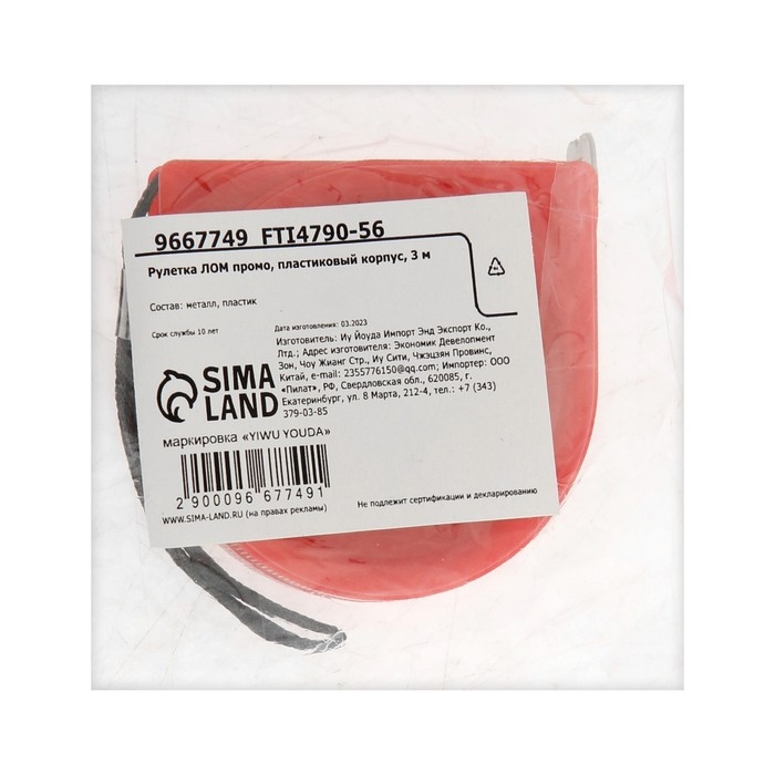 Рулетка ЛОМ промо, пластиковый корпус, 3 м х 12 мм