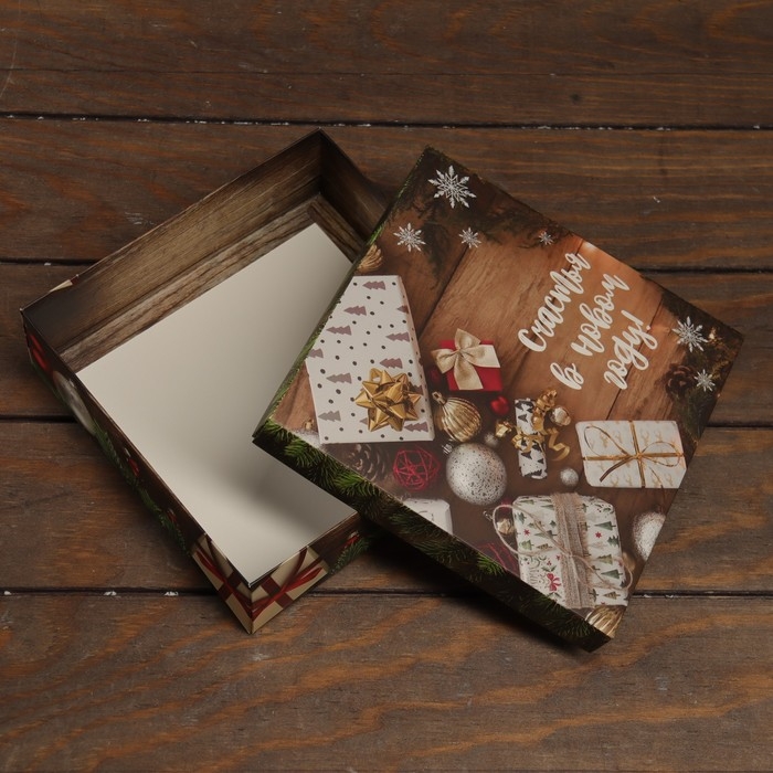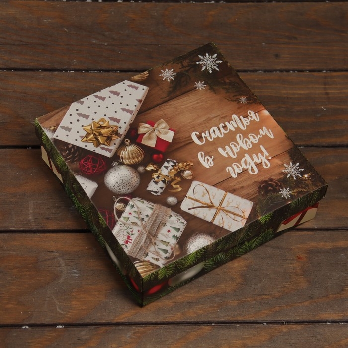 Новый год. Коробка подарочная новогодняя складная, крышка-дно "Новогоднее счастье" 20 х 20 х 6 см