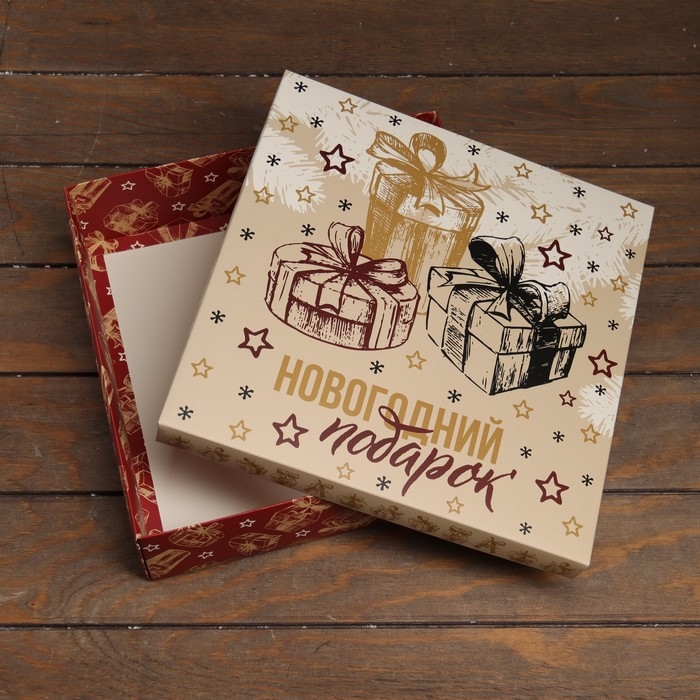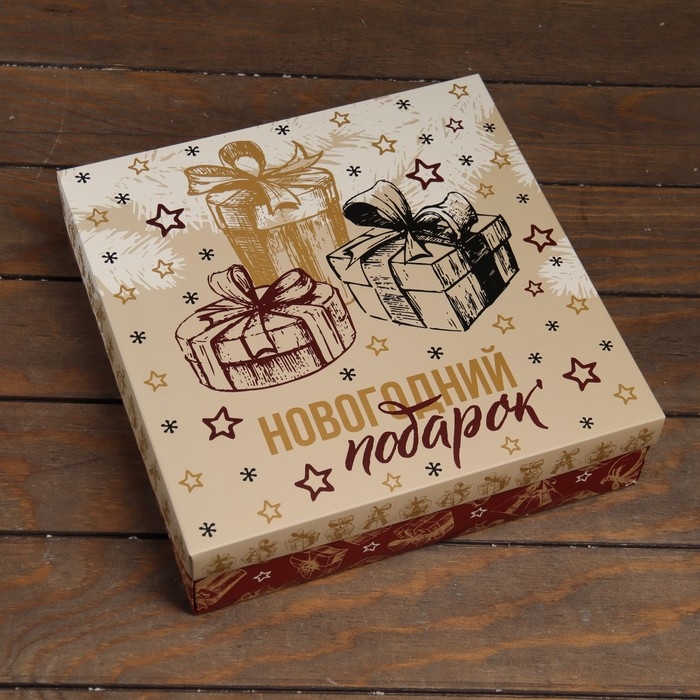 Новый год. Коробка подарочная новогодняя складная, крышка-дно "Новогодний Подарок" 30 х 30 х 8 см