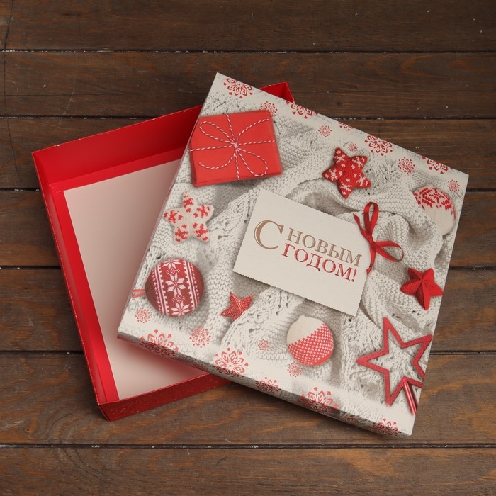 Новый год. Коробка подарочная новогодняя складная, крышка-дно "Волшебная новогоднее утро" 30 х 30 х 8 см