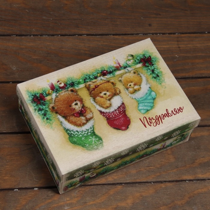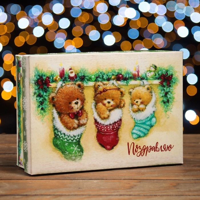 Новый год. Коробка подарочная новогодняя складная, крышка-дно "Поздравляю с Новым Годом" 24 х 17 х 8 см