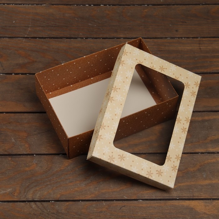 Новый год. Коробка подарочная новогодняя складная, крышка-дно, с окном "Новогодняя снежинка" 24 х 17 х 8 см
