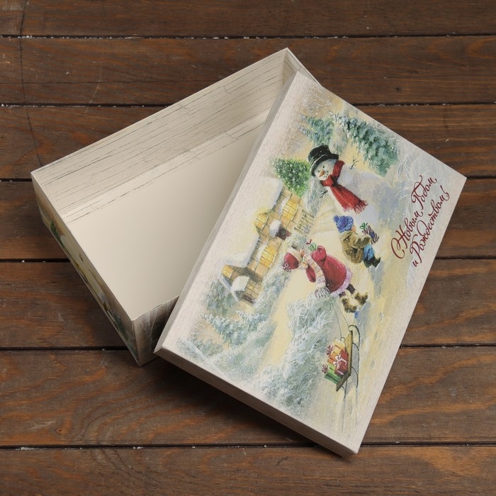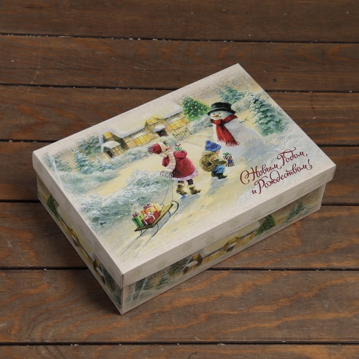 Новый год. Коробка подарочная новогодняя складная, крышка-дно,"С Новым Годом и Рождеством" 30 х 20 х 9 см