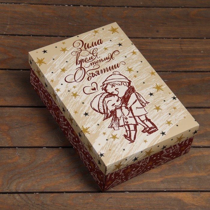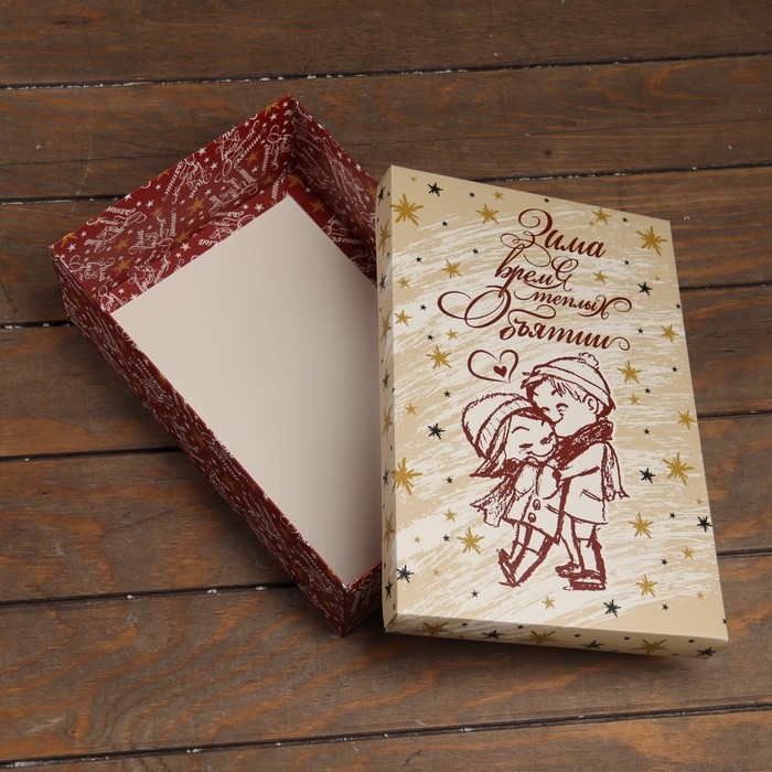 Новый год. Коробка подарочная новогодняя складная, крышка-дно,"Зима время теплых объятий" 30 х 20 х 9 см