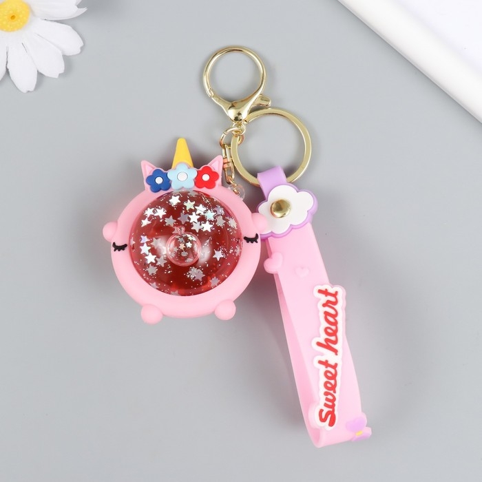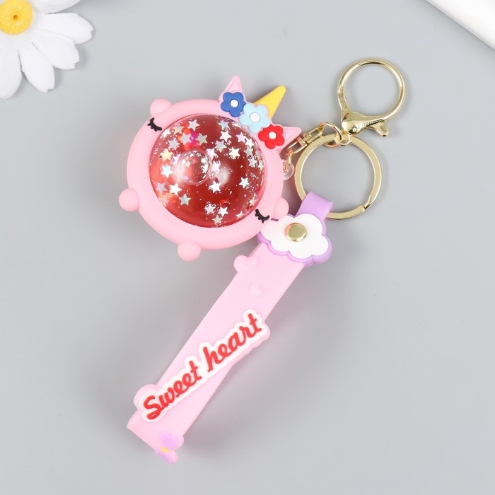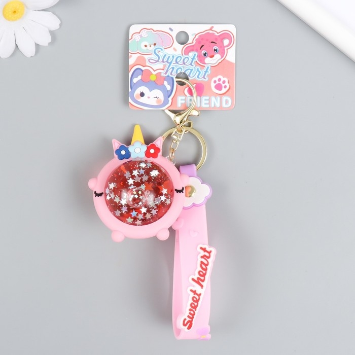 Брелок резина "Шарик-единорожка" с браслетом и карабином, розовый 4х6х7,4 см