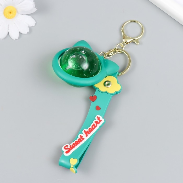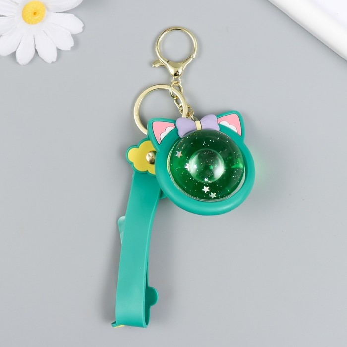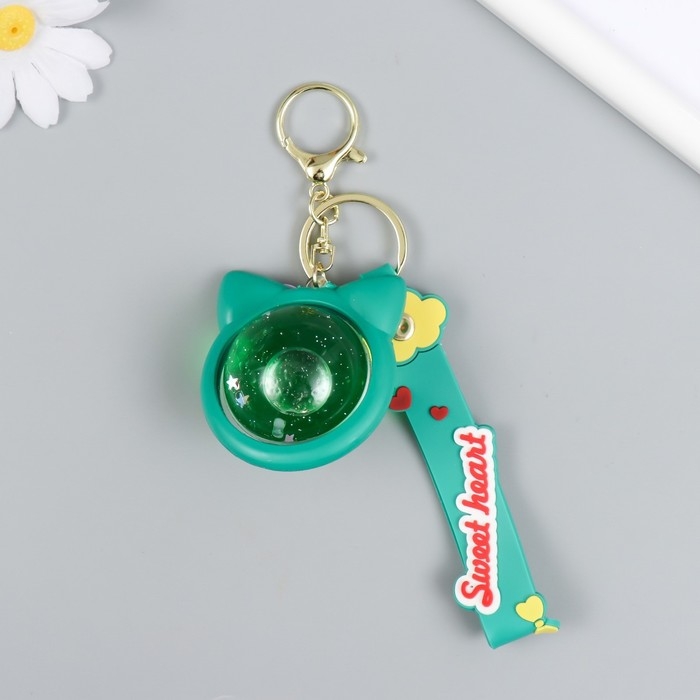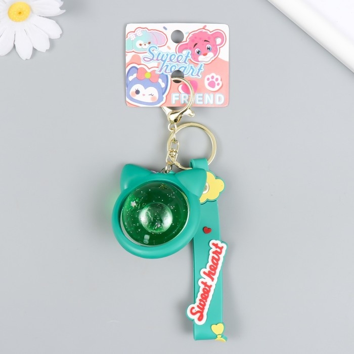 Брелок резина "Шарик-котик" с браслетом и карабином, зелёный 4х5,5х5,5 см
