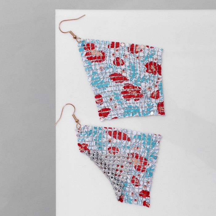 Серьги висячие «Ромб» кольчуга, цветы маки, цвет красно-голубой, 9 см
