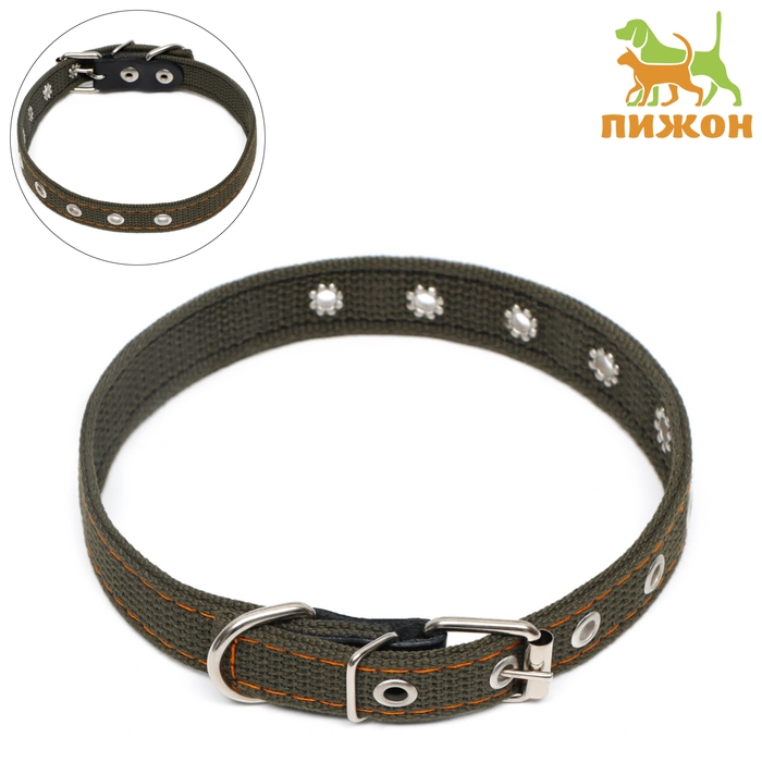 Ошейник брезентовый безразмерный однослойный, 72 х 3,5 см, ОШ 45-60 см, хаки