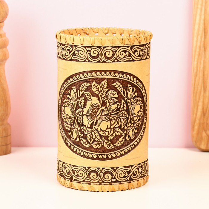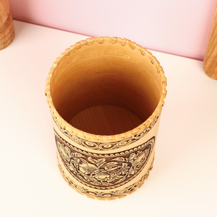 Туес «Цветы», высокий, 6×6×12 см, береста