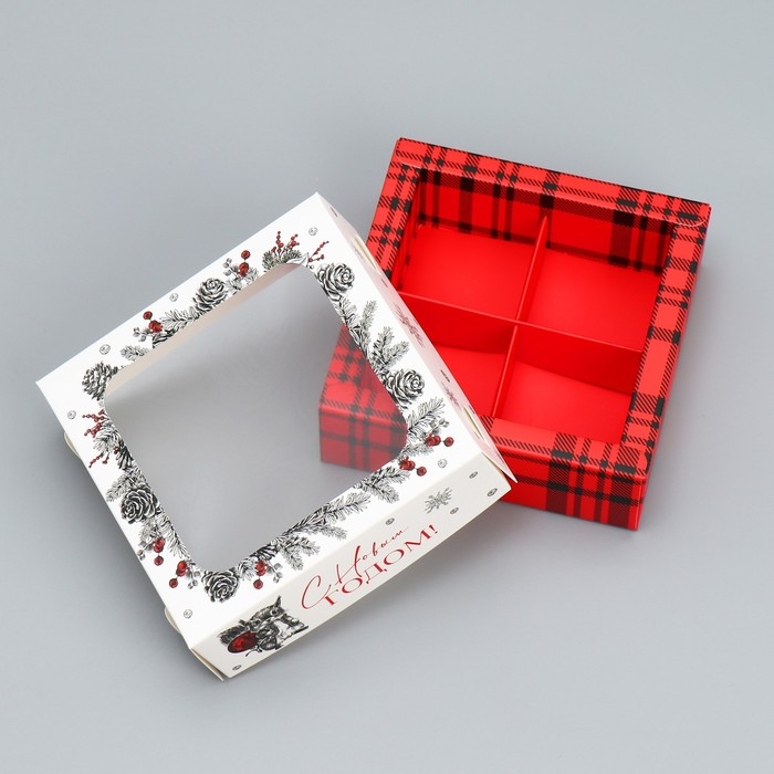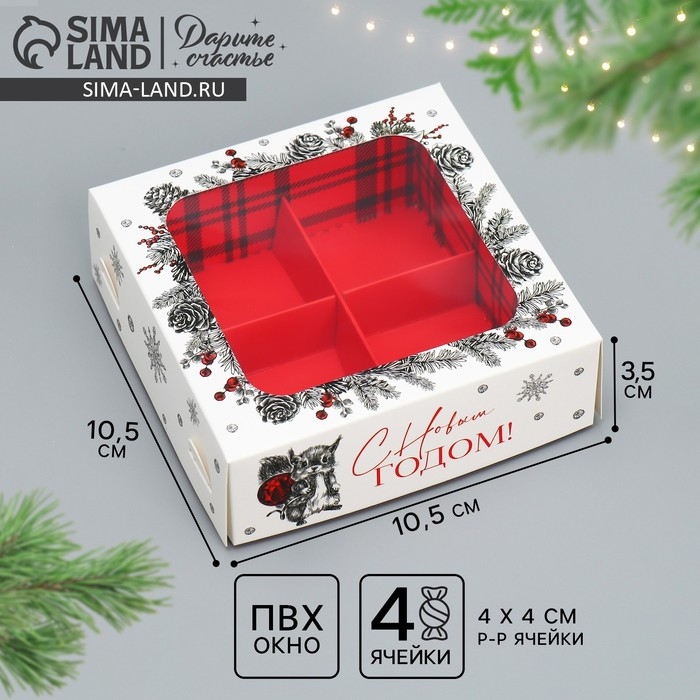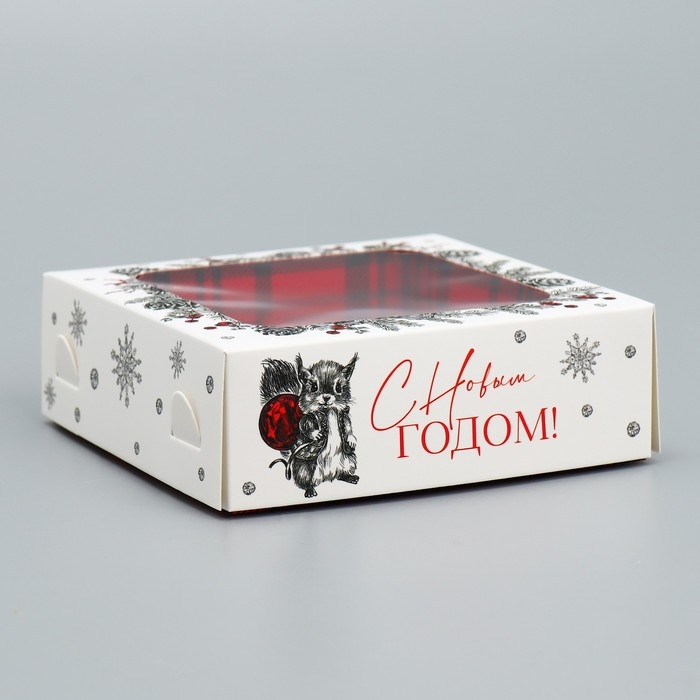 Коробка под 4 конфеты «С Новым годом!», белочка, 10.5 х 10.5 х 3.5 см, Новый год