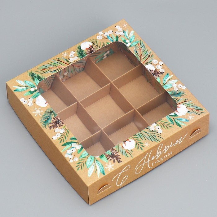 Коробка под 9 конфет «С Новым годом», эко, 14.7 х 14.7 х 3.5 см, Новый год