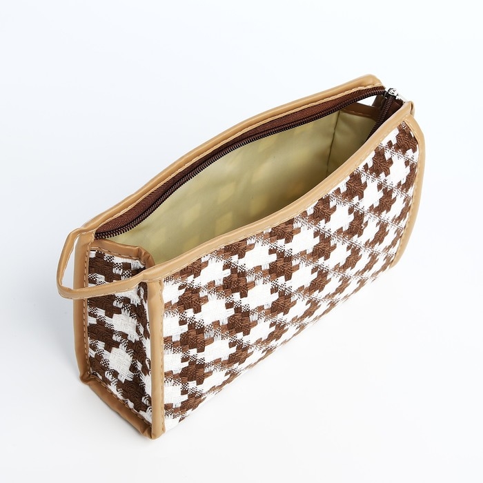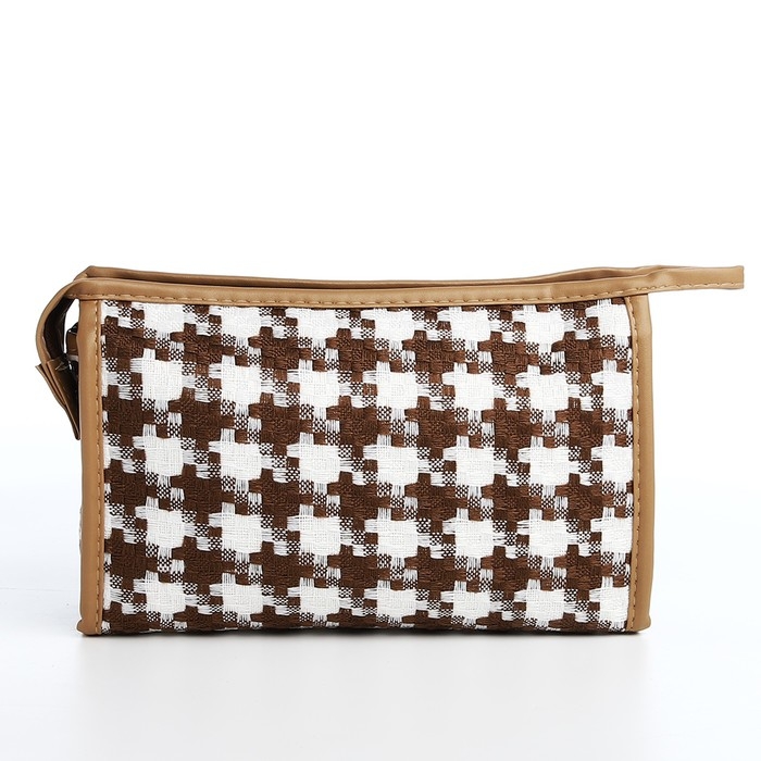 Косметичка на молнии, цвет белый/коричневый