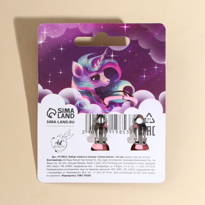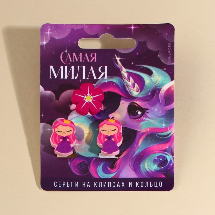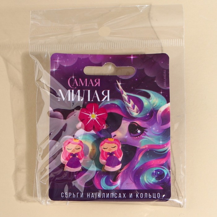 Бижутерия «Самя милая» набор для девочек: серьги клипсы и кольцо, 6 х 9 см