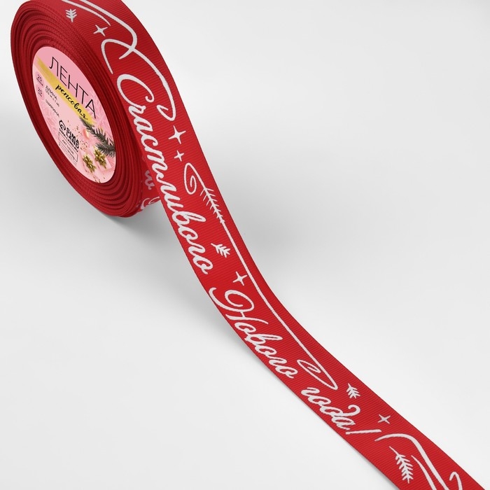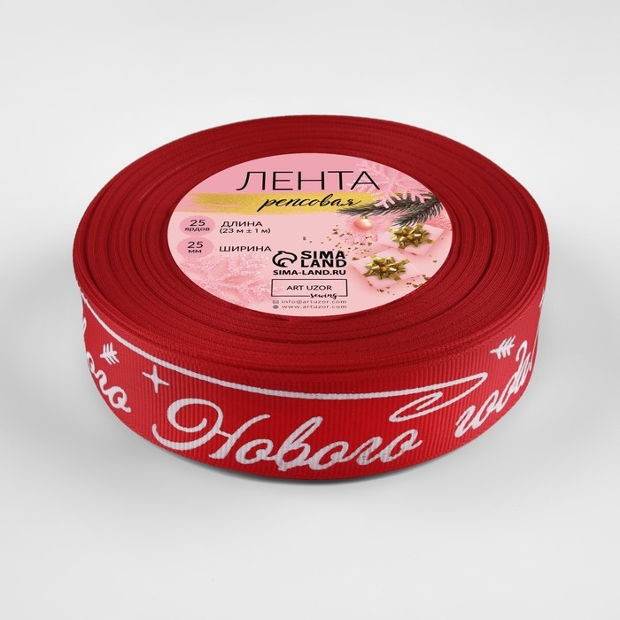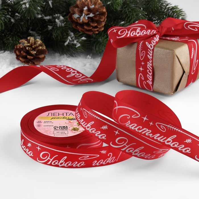 Новый год! Лента репсовая «Счастивого Нового года!», 25 мм, 23 ± 1 м, цвет красный/белый №026