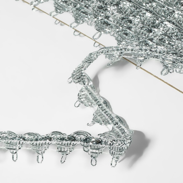Тесьма декоративная, 15 мм, 10 ± 1 м, цвет серебряный