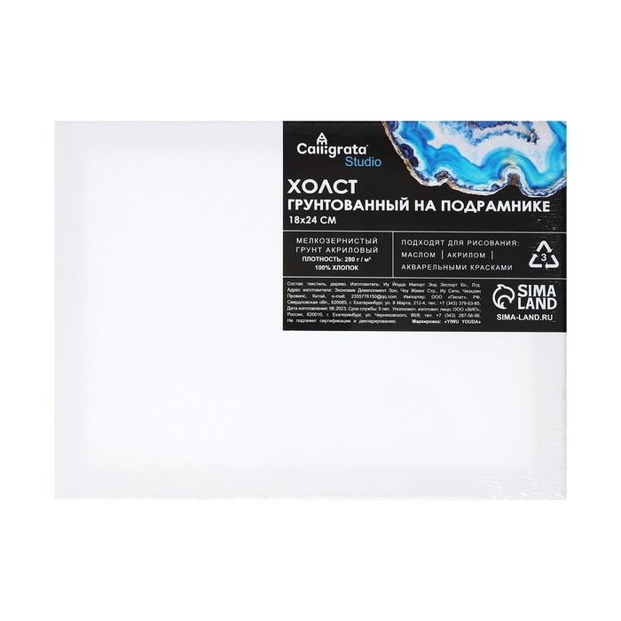 Холст на подрамнике 1,6х18х24 см, хлопок 100%, акриловый грунт, мелкозернистый, 280г/м²