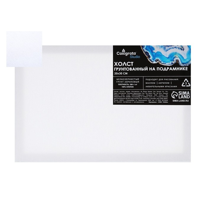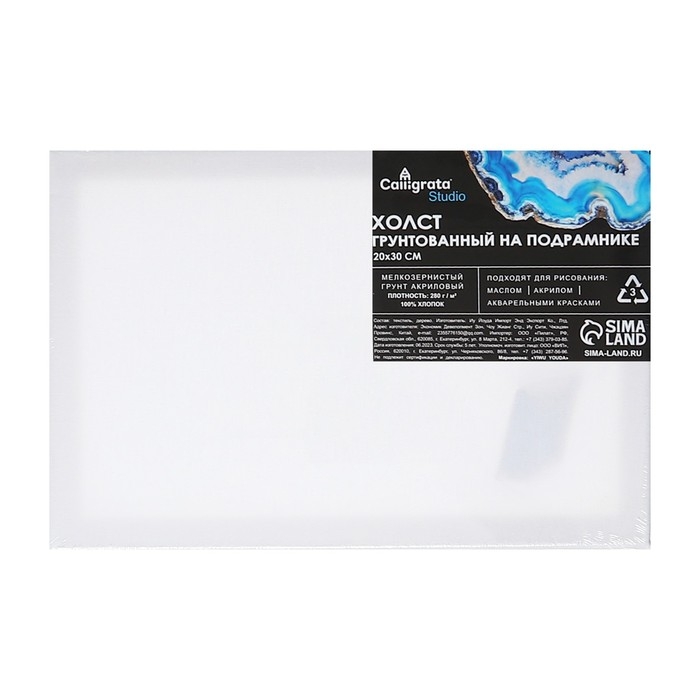 Холст на подрамнике 1,6х20х30 см, Calligrata, хлопок 100%, акриловый грунт, мелкозернистый 280г/м²