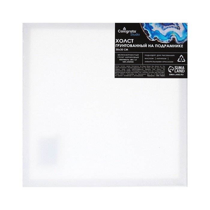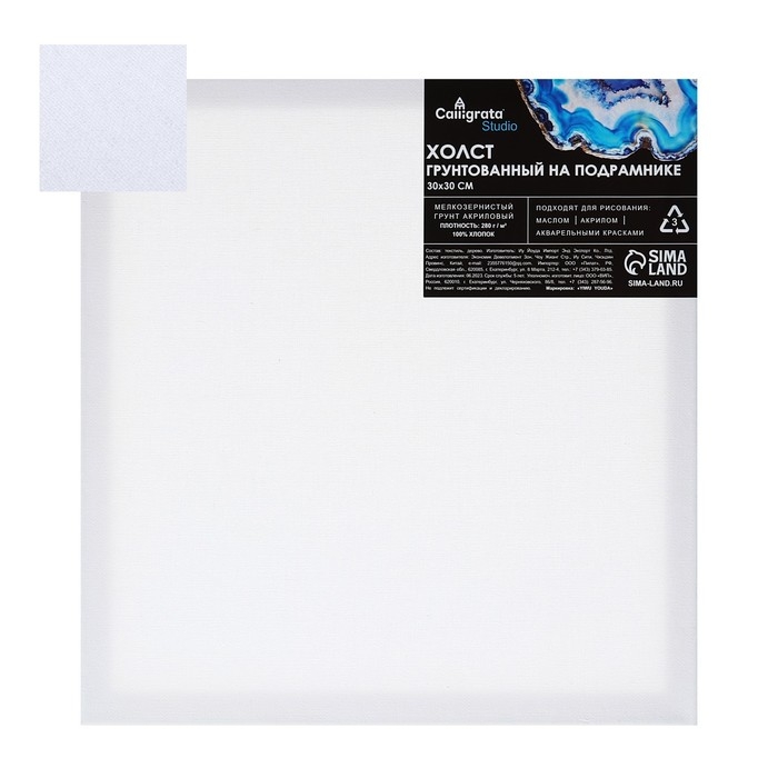 Холст на подрамнике 1,6х30х30 см, хлопок 100%, акриловый грунт, мелкозернистый, 280г/м²