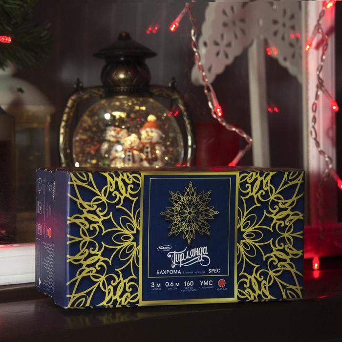 Гирлянда «Бахрома» 3 × 0.6 м, IP44, УМС, прозрачная нить, 160 LED, свечение красное, 220 В