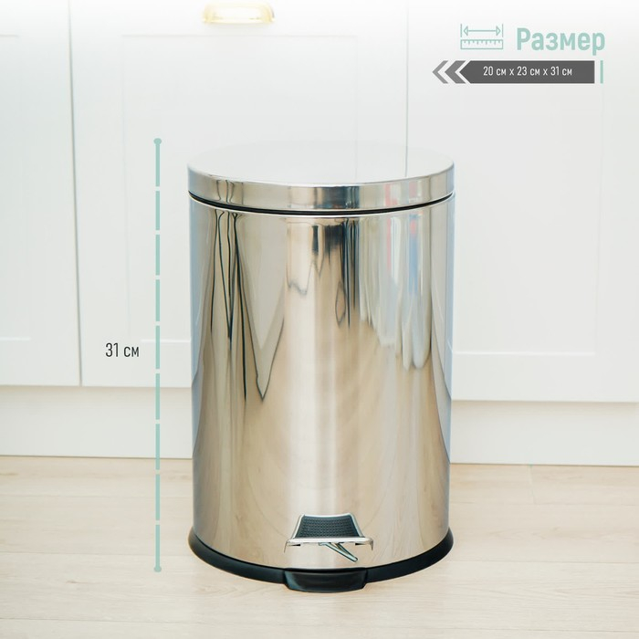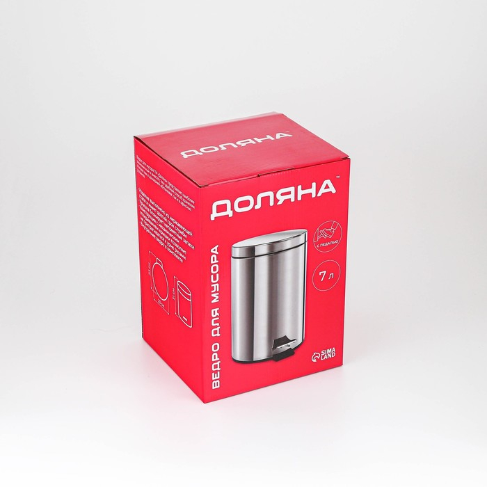 Ведро мусорное с педалью Доляна, 7 л, нержавеющая сталь, цвет хромированный