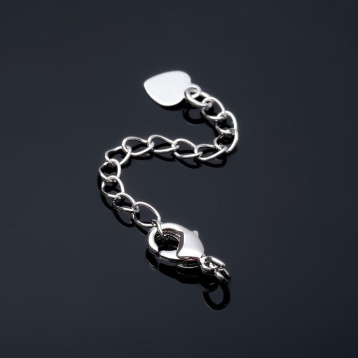Замок-карабин родированный 10 мм «Сердечко» с удлинителем 4 см, цвет серебро